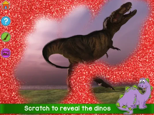 A scratch and color game with amazing dinosaurs! In this game children will discover a hidden image in scratch mode or paint in the coloring mode, and also learn the name of each dinosaur as you play.