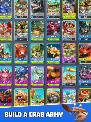 Command a mighty King Crab and unleash an unstoppable army to conquer exotic islands brimming with fierce enemies and treasures. With each victory, grow stronger, expand your army, and dominate the ocean. Strategize your attacks, outsmart your foes, and lead your crabs to ultimate glory! Please note: King of Crabs is free to download and play, however, certain items are available to be purchased for real money. If you have any questions or concerns, please contact us at: support@robotsquid.com