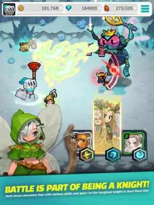 Hunt down monsters fast with various skills and gear! I'm the toughest knight in Soul Pixel City!