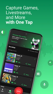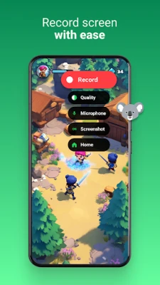 Koala is a screen recorder with audio. Capture music, game sounds or other phone sounds as you record your screen. Record microphone commentary over the top. Or both, or neither.