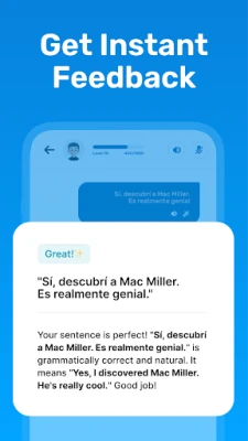 In the app, you can simply chat or speak with dozens of AI Bots on anything you like, in your desired language, and get auto-corrected by the AI.