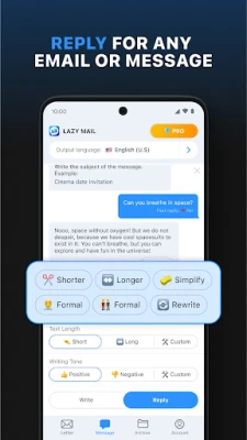 Say goodbye to writer's block with Lazy Mail. Our app not only helps you Write Emails but also guides you in creating various forms of written content. From quick replies to detailed letters, Lazy Mail's AI Writer is your ally in all things writing.