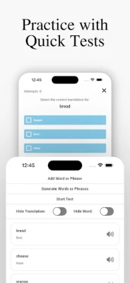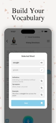 Strengthen your language foundation with dedicated grammar lessons and vocabulary exercises. Learn new words, save them for later, and review them anytime.