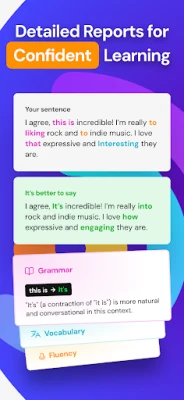 Real-time feedback to improve pronunciation and fluency.