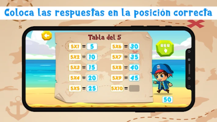 They will begin the adventure through an interactive training in which, by touching each of the values of the multiplication table, an audio will be played with the correct result, helping the easy understanding and learning of multiplications, to later mess up the results and try to remember and place them in their correct position.
