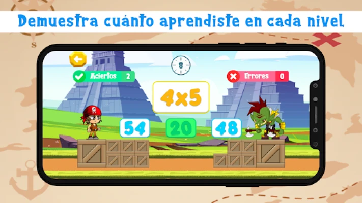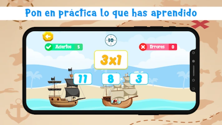 Once the children have learned or reviewed the multiplication tables, they will choose multiplication tables from one to ten from the mission menu, each mission is a very fun interactive game. Random results will appear and only one of the results will be correct, having to identify and select it in order to have a correct answer.