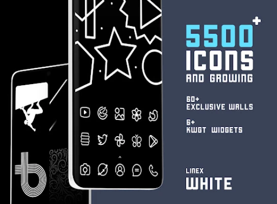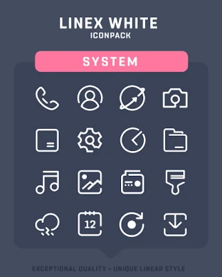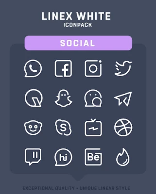 LineX White Icon Pack has a unique Line style from up-close, the icons look like they're really unique and out of the box , which makes for a stunningly-different look in the digital age. There are over 5500+ icons as well as a multitude of high-quality wallpapers to complement the look with Line icons.