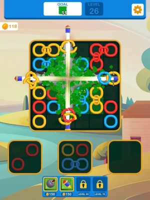 Each level comes with unique challenges like "create a chain of 5 yellow links, 10 red links, and 5 blue links." Achieve these goals to advance through the levels of this challenging puzzle game.
