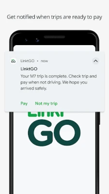LinktGO displays your trip details in real time. Review and pay as you go directly from the app.
