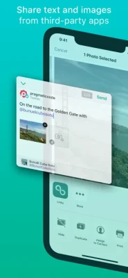 • iOS Share Extension is integrated directly into Safari and many other third-party apps, allowing to directly share text, images and web page links.