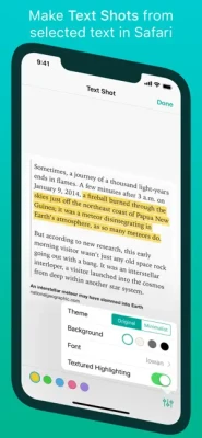 How about selected text in Safari? Linky's Web Clipper extracts selected text and carries it over to the composer sheet, ready for you to edit. You can also make a text shot from the text selection for sharing as a beautiful image.