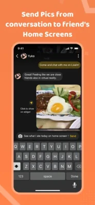 WIDGET LiveIn allows you to send your pictures straight to your friends’ Home Screen! Add LiveIn on your Home Screen as a widget. When you send a photo to your friends, the photo will automatically pop up on the Home Screen!