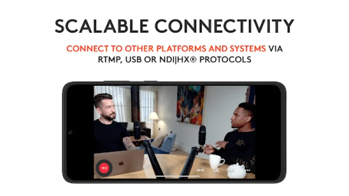 Mevo integrates seamlessly into any setup with Webcam Mode, RTMP and NDI|HX compatibility**.