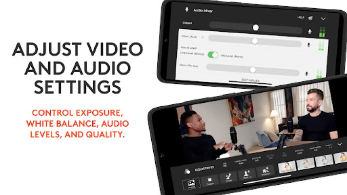 Control exposure, white balance, audio levels and quality.