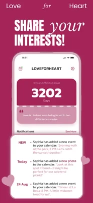 Love For Heart is designed to STRENGTHEN and NURTURE your relationship by keeping you and your partner always in sync. With personalized PROFILES, shared CALENDARS, and a variety of features that bring your moments together, it’s the perfect app to STAY CONNECTED with your special someone, no matter where life takes you.