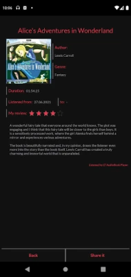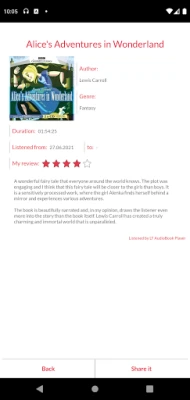 - the possibility of review the book with subsequent sharing of the review on social networks