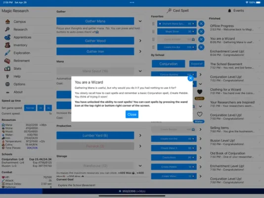 In Magic Research, you are the headmaster of a newly-created institution of Magic with one goal: to learn as much as possible about this power and get enough fame to be able to compete, and win, the prestigious competition of schools: the Tournament of Magic. But what will you discover along the way?
