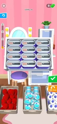 Makeup Organizer 3D is an engaging and satisfying organizing game that lets you sort and categorize makeup in a virtual world, unlocking your inner organizing skills. With a relaxing ASMR experience, you can enjoy the pleasure of turning clutter into order in a 3D environment. Whether you’re placing lipsticks, foundations, or organizing eyeshadow palettes, each level is filled with challenges and fun.