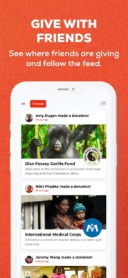 - Follow your friends and see where they're giving.
