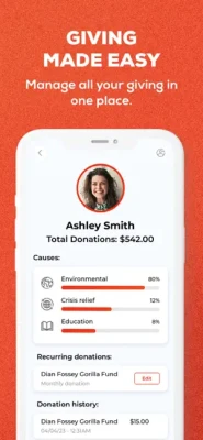 - A dashboard in the app to manage all of your donation activity.