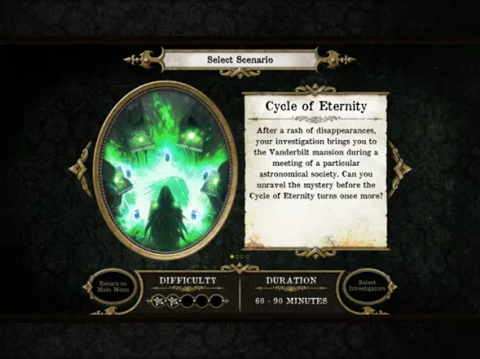 This companion app guides you through the haunted halls and misty alleyways of Arkham in stories of varied length and difficulty. In addition, investigators need to overcome various challenges, including fending off terrible creatures, befriending non-player characters, and solving puzzles.