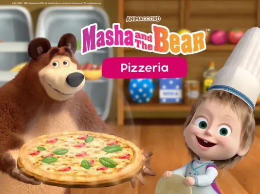 Anybody ordered a pizza? We deliver fresh, juicy pizza all around the world in 30 minutes, because it is Masha and the Bear, and they are opening their own pizzeria!