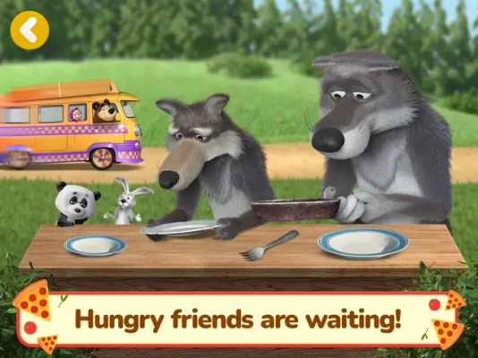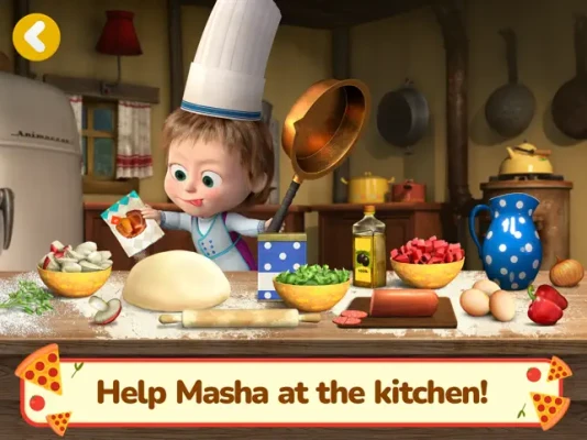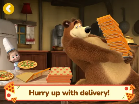 Masha and the Bear are opening a pizzeria! Make the tastiest pizza and deliver it to friends! Want a bite?