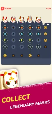 A Masketeer can be equipped with masks and runes of various bonuses and rarity. Collect and equip them to see which ones best suit your battle strategies.