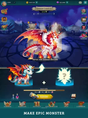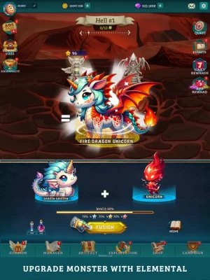 Fusion Legends : The Ultimate Fusion is a captivating strategy RPG where players create unique creatures by merging real-life animals like wolves, lions, boars, sharks, bees, and unicorns. These creatures also harness elemental powers such as fire, ice, nature, light, and darkness, adding a strategic twist to gameplay.