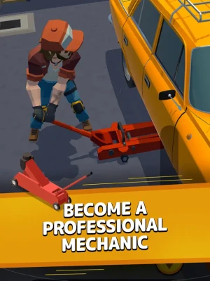 In this car mechanic simulator, you will manage your own auto repair shop. You start as a simple tire fitter and gradually develop, mastering new methods and types of repair work.