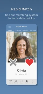 - Rapid Match: Are you in a rush and only want to look at photos? Decide which singles you like here instantly by swiping right or left