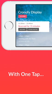 • Find an available room for a meeting, and book with a single tap