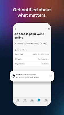 Whether you need to quickly check the status of your networks, configure a misconfigured switch port, or check out an alerting device, the Cisco Meraki mobile experience is here to help.
