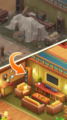 🛋️Relaxing Home Renovation - Enjoy your time in Home Match Garden Design whenever you want. If you hate waiting, some boosters are also available to speed up the process for House Makeover.