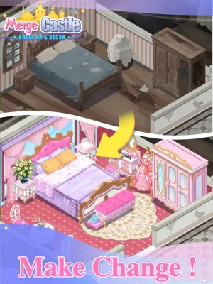 Merge Castle provides a complete home decoration system, diverse furniture, closet, carpets and various accessories. The players can create their personal style castle in the game!