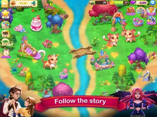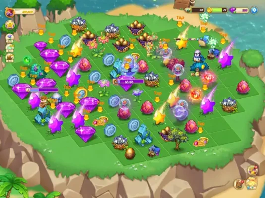 - Move objects in the world at will, and match 3 objects of the same species to evolve them. Tap it to release its power and heal your garden cottage.