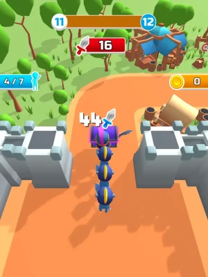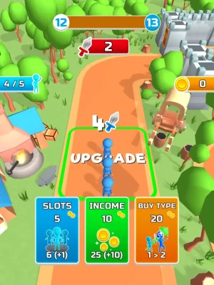Loop around the track with your army towards the stronghold, and along the way managing & buying more units, then merge them to create strong soldiers before upgrading them into a superior army to destroy your foe!