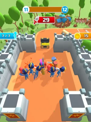 Loop around the track again and continue upgrading your units, merging them and buying more as you near the fort. Can you strategise to use the right method of action and decide what's best to spend your in-game currency on? Will you invest in upgrades for your troops? Or will you hire more mercenaries to merge together? Do what you can to avoid falling before your enemy and losing on the battlefield!