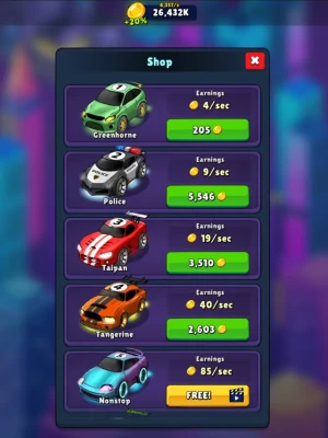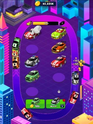 Merge 2 cars to get a new cooler model. Let neon cars race in a glowing night city arena to earn money for you. Activate super speed bonuses to make money faster. Which of the cool cars will become your favorite? Don´t forget to open mystery boxes - you can find many special cars in them. The most favorite one is the police car.