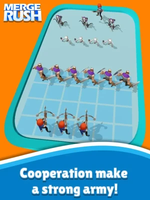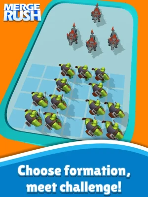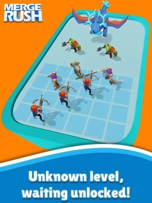 Merge Rush is a fun game with merge game play. Merge fighters of lower level to get higher level and become stronger to win the battles.Create your own army to defend your home against the evil legions in an epic battle. Savage orcs, mystical mages and dragons soar through the air, and with summoning and synthesis, they will all join you to build your invincible army.