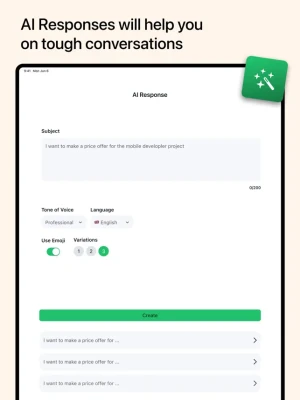 Handle tough conversations effortlessly with AI-generated responses, all through a user-friendly interface.