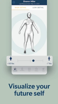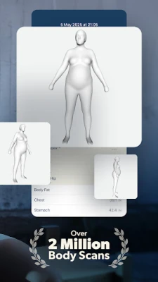 This feature allows users to visually track their physical transformation over time by comparing past and present 3D body scans. The side-by-side layout makes progress easy to see, highlighting even subtle changes in body shape. It not only helps reinforce motivation but also provides a tangible, visual record of improvement, beyond just numbers on a scale. These comparisons can document change in a way that's both personal and powerful, offering a deeper understanding of your journey.