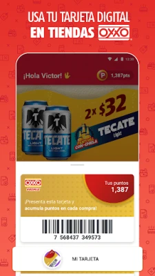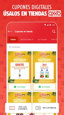 Con mi OXXO App® ahorra en tus compras diarias, recibe y usa promociones y cupones en tiendas OXXO®. Encuentra diariamente diferentes cupones digitales disponibles que podrás hacer uso en tiendas OXXO®, actívalo y escanéalo en tienda para hacer válida la promoción. Además no te pierdas de las promociones del mes en tiendas OXXO®, en el apartado de promociones.