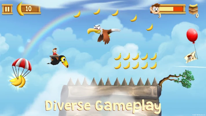 Outrun and defeat animal enemies and monsters, such as crocodile, evil hedgehog, donkey, bat and piranha. Also try out the donkey kick to briefly fly through the sky and collect more banana. Overcome dangerous obstacles like spike balls and boiling lava.