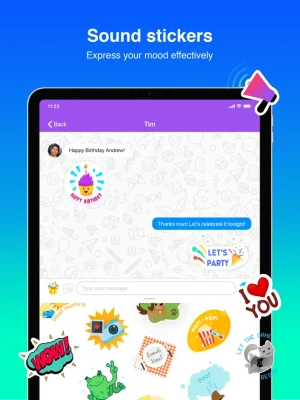 Express more with Sound Stickers or GIF. Send and receive stickers with sound notifications. Surprise your friends and give your messages emotions. It is fun.