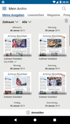 Es werden Ihnen nach dem Login sämtliche abonnierte Ausgaben angezeigt.