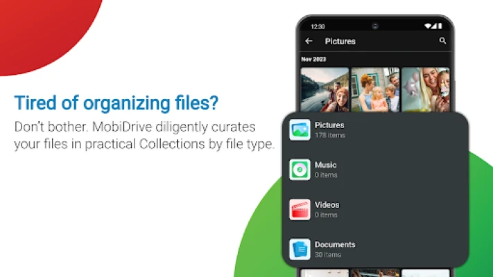 • MobiDrive supports all major photo, video and office file formats, making it an ideal solution for photo storage, video storage, or a secure space for your work files.