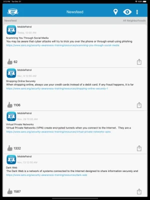 • Quickly view relevant safety news and alerts from your Neighborhoods right on your Newsfeed. No more combing through daily social chatter to find important information!