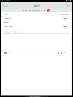 • “Report it!” lets you contribute to your community’s safety. Share crime tips, traffic alerts, broken mains, fallen trees … even lost pets! Add related photos/videos to each report.