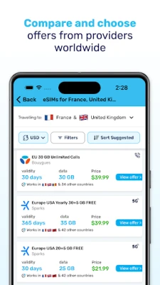 Compare and Buy eSIM Deals & Roaming Offers from top operators worldwide.